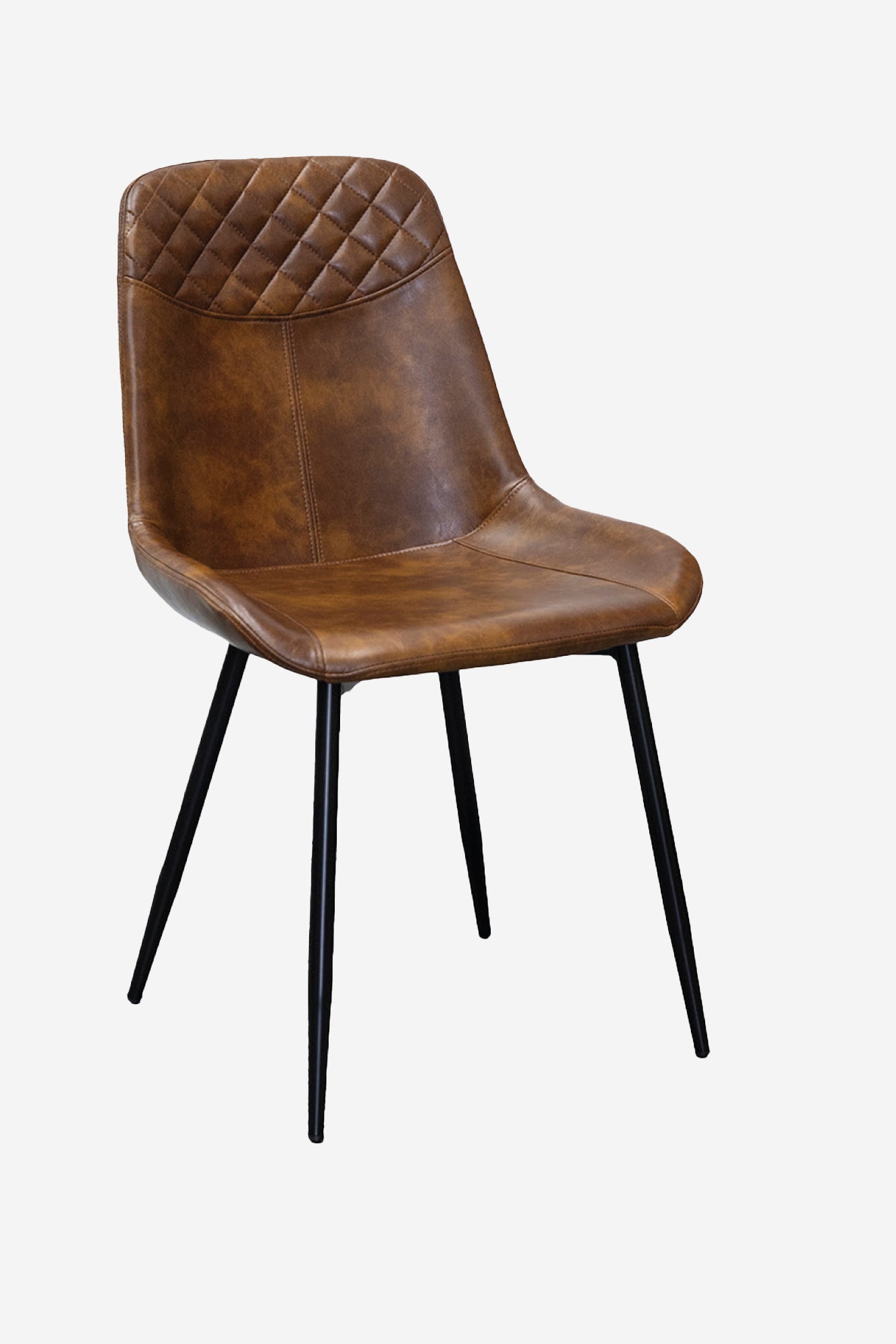 Elevate your dining experience with this elegant and practical dining chair, accentuated with sleek stitch details. Crafted for durability, it features padded seating on a metal frame.