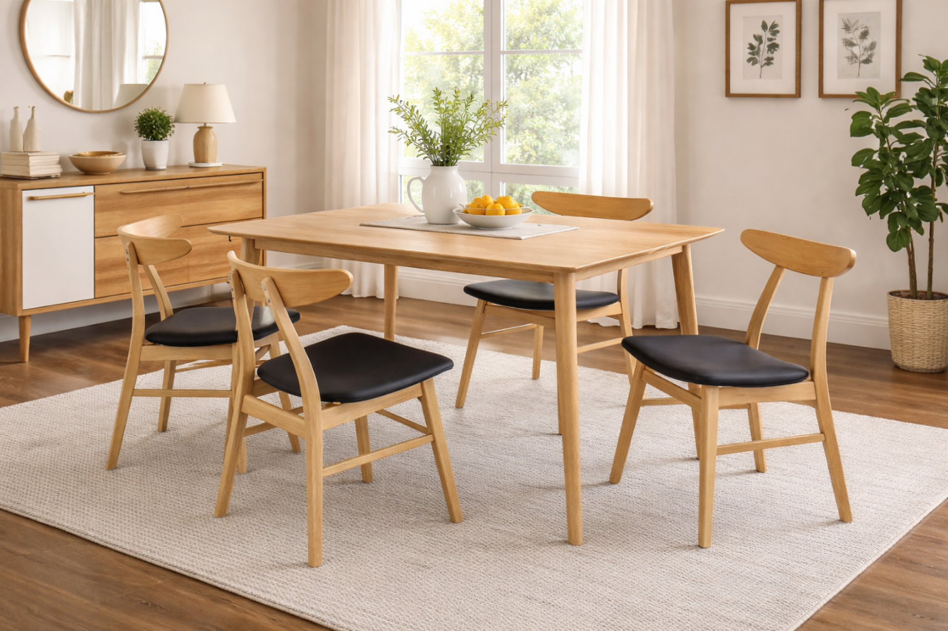 Discover the perfect balance of natural beauty and modern style with our dining tables. The timber veneer top, rich in character and warmth, is beautifully complemented by solid timber legs. This table is a statement of refined simplicity, designed to enhance any dining room with its elegant presence.